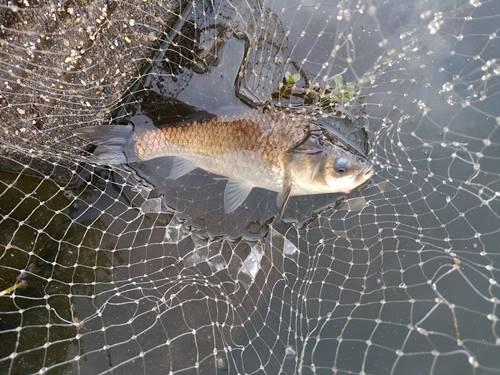 丸うきがピクピク動いていたので合わせたらマブナ!