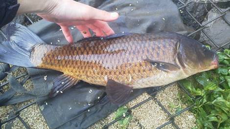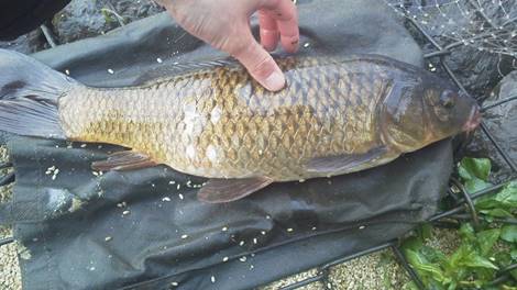 大変活きの良い小型の鯉でした。やや手こずりましたがネットイン。