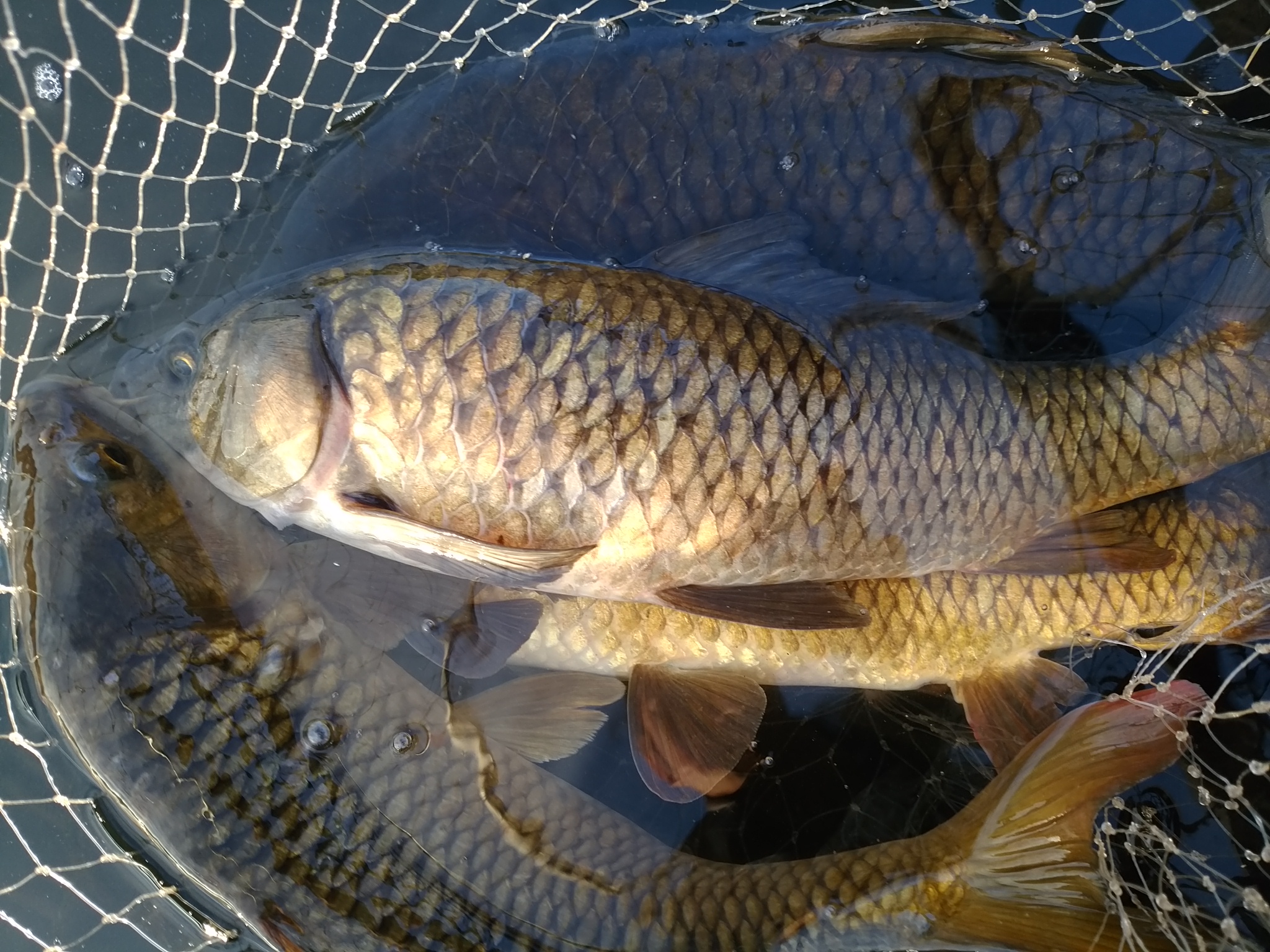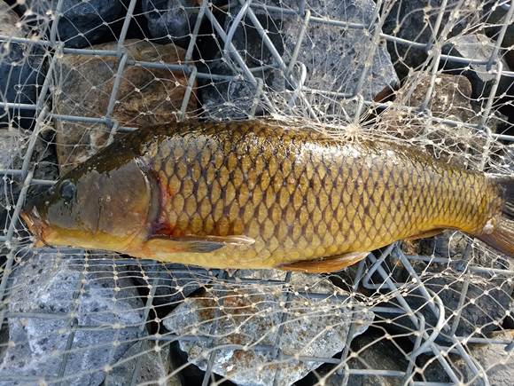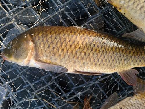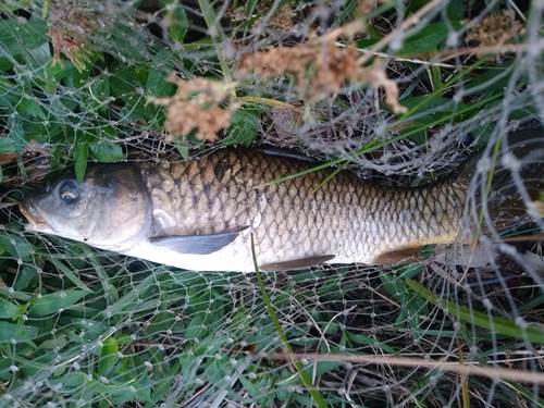 サイズも小さく引きがやや弱く、ジタバタしているだけ。もしかして鮒様かな…?と、思っていたら鯉!次第に鯉っぽい引きへと変化していく。