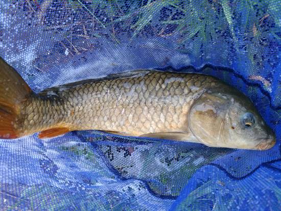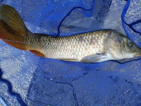 体に傷のある鯉でした。すぐにリリース。
