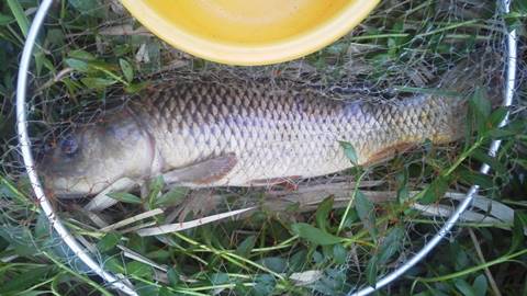 ぐい~っと大した引きではありませんでしたが、あれだけ食い渋っていた鯉が岸際に投入したらすぐに喰ってきてくれたので、読みが当たり嬉しかったです。