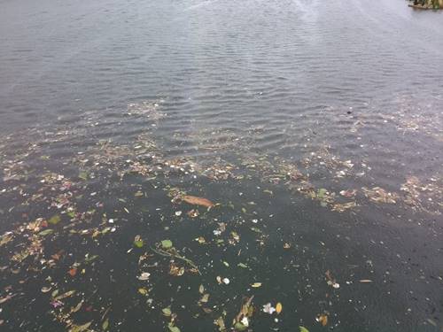 余ったごはんがあったので、それを撒き餌として投入。風が強くてちぎったパンでは風に流されてしまうので重量のある残り物のごはんを撒き餌に。
